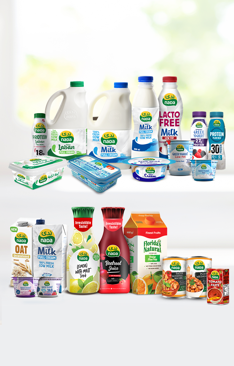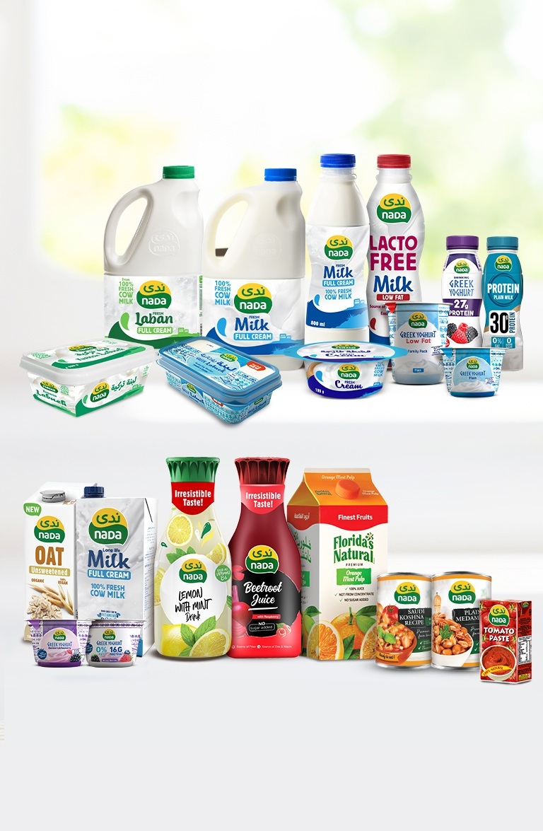 We offer a variety of products, including fresh and long-life milk, natural juices (Florida Natural), laban, ayran, yogurt, labneh, cream, tomato paste, and Greek yogurt.
