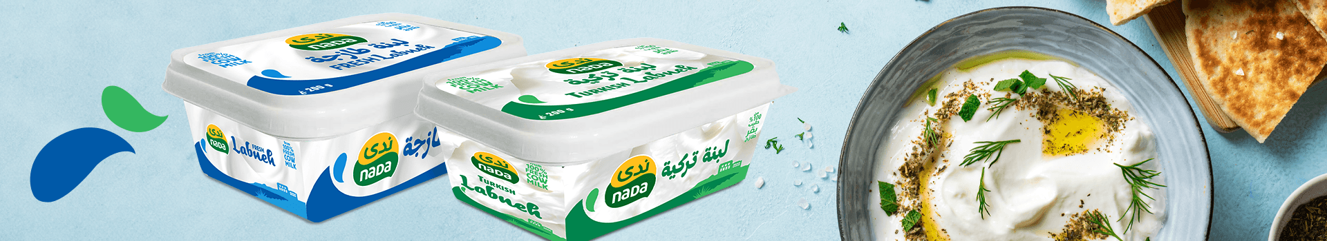 تقدم ندى لبنة غنية بقوام كريمي ونكهة لذيذة. متوفرة بأنواعها الطازجة والتركية، مثالية للدهن، التغميس، أو لإضافة لمسة كريمية لأطباقك المفضلة.