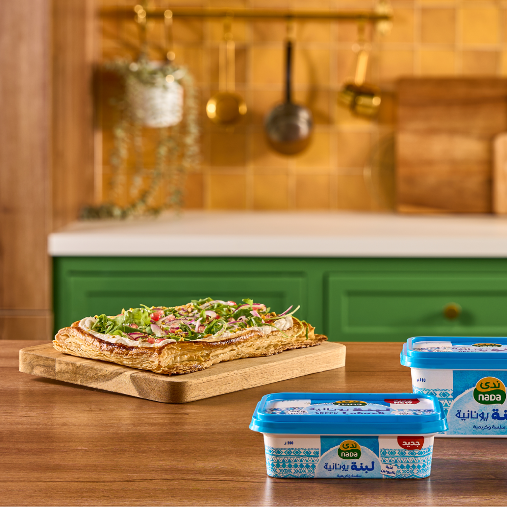6. للتجميع، افردي مزيج اللبنة بالتساوي فوق قاعدة البف باستري المبردة